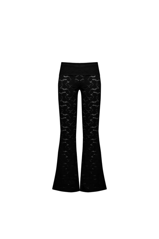 [POKOFOSCA] FOLDOVER-WAIST FLARED PANTS (BLACK) -
