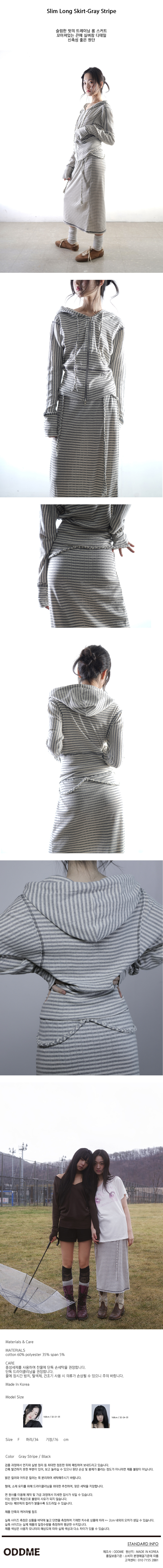 [ODDME] Slim long skirt -Gray stripe