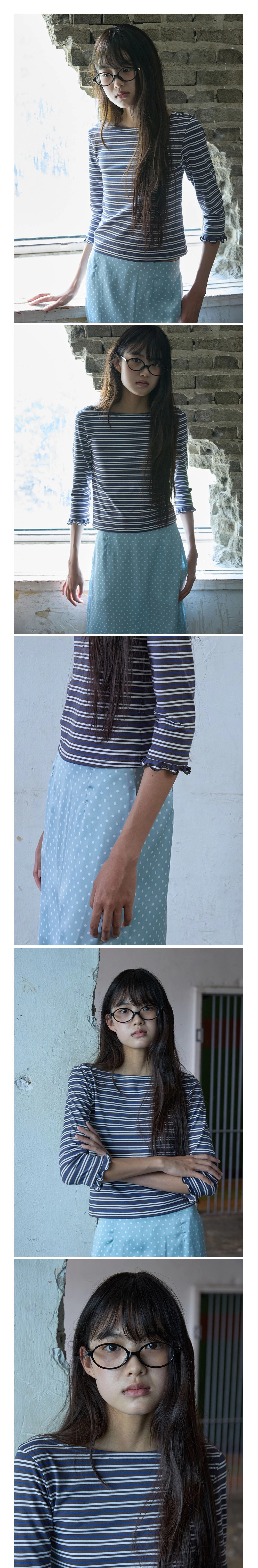 [HOKUSPOKUS] Sleeve Ruffle Stripe Tee_Brown