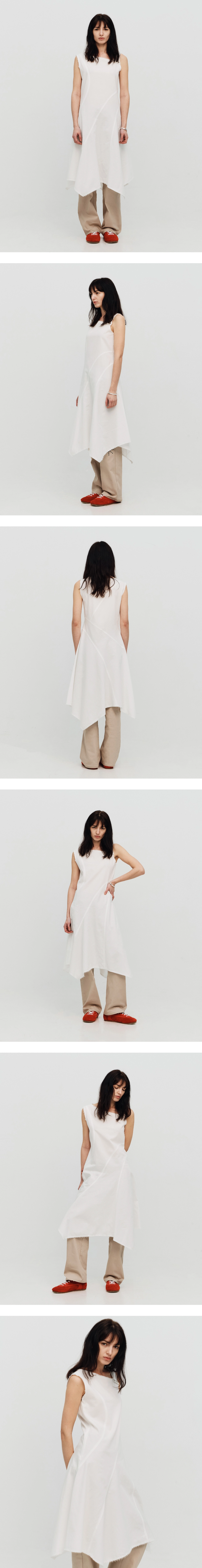 [SEALOT] ASYMMETRIC CUT SNAP COTTON MAXI DRESS (WHITE)