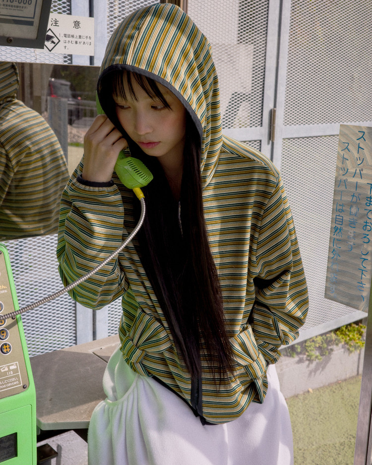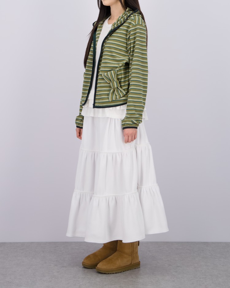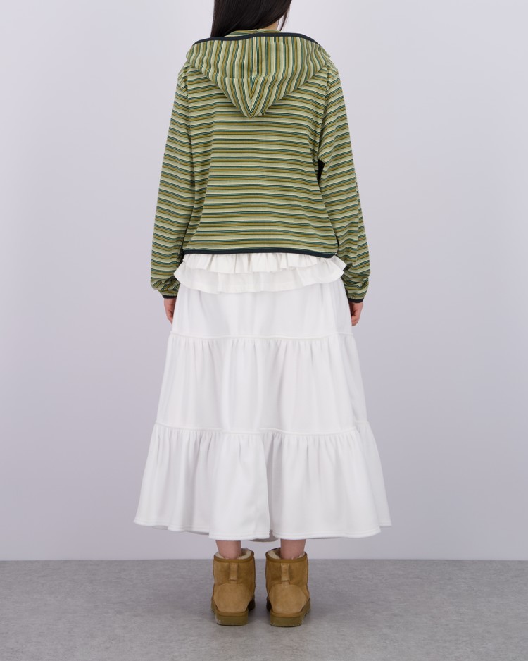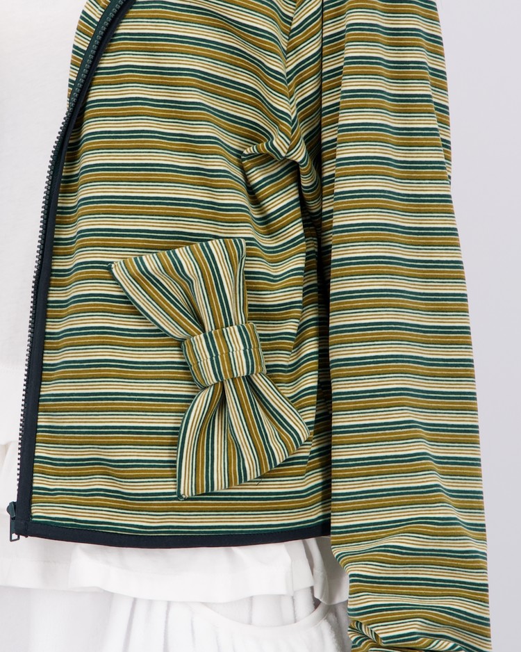 [LO AXUAL] FLEECE MULTI STRIPE RIBBON HOOD ZIP UP_GREEN