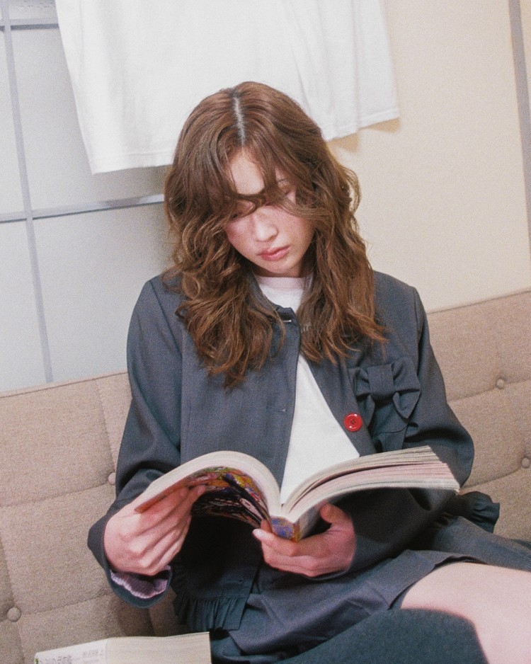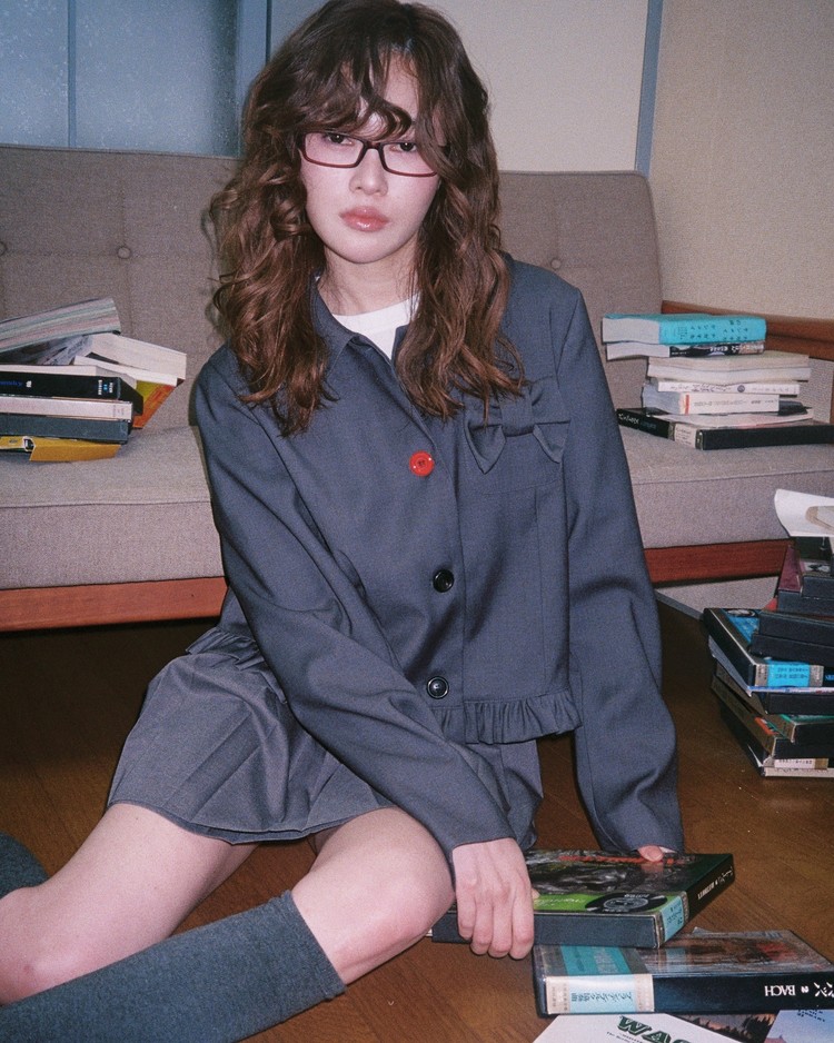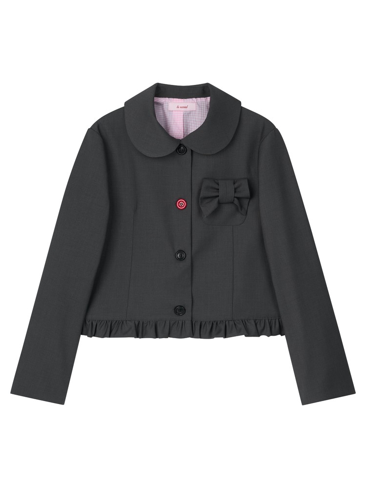 [LO AXUAL] PETER PAN COLLAR RIBBON JACKET_CHARCOAL