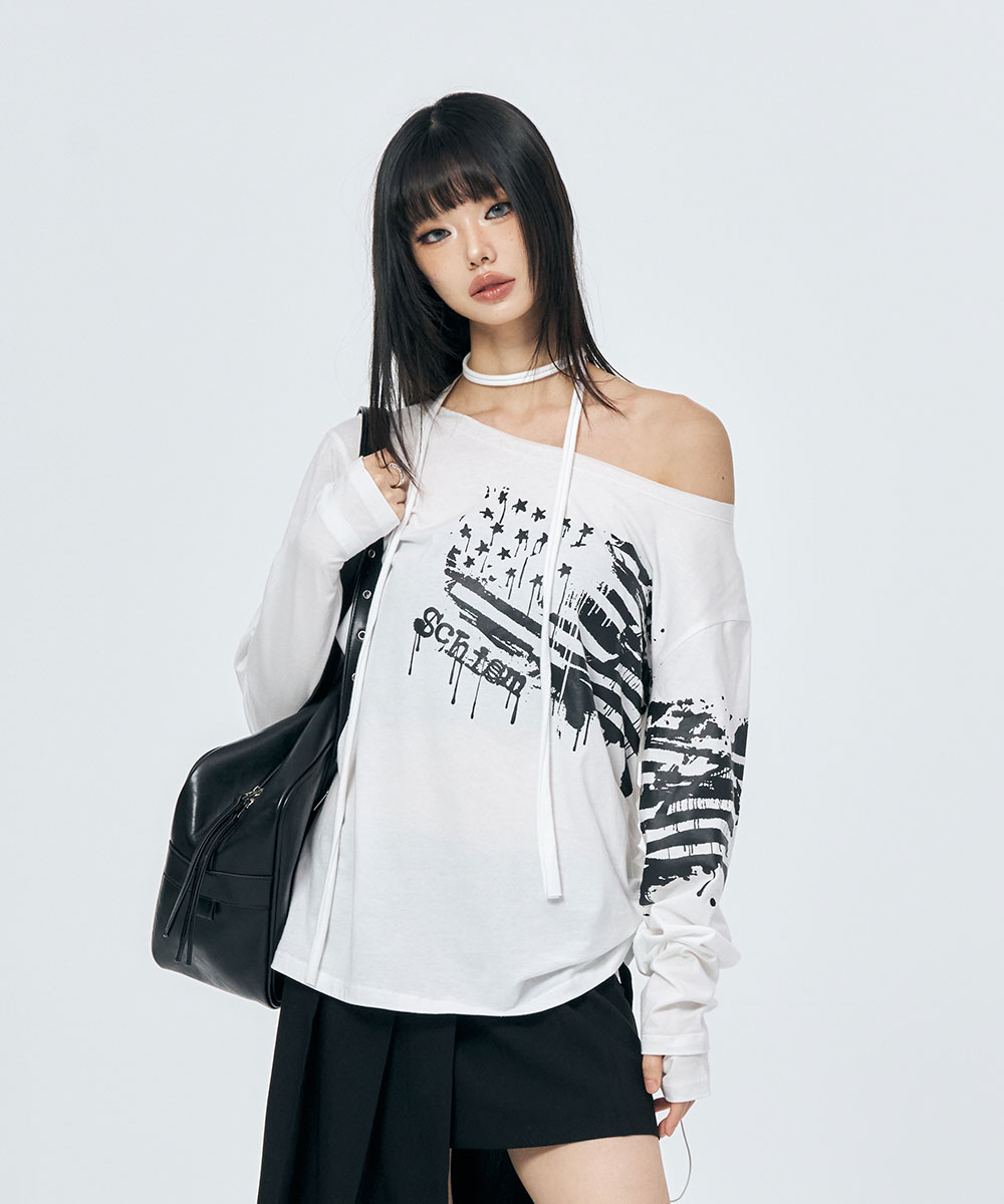 [SCHISM INDUCING] GRAFFITI FLAG LS TEE WHITE