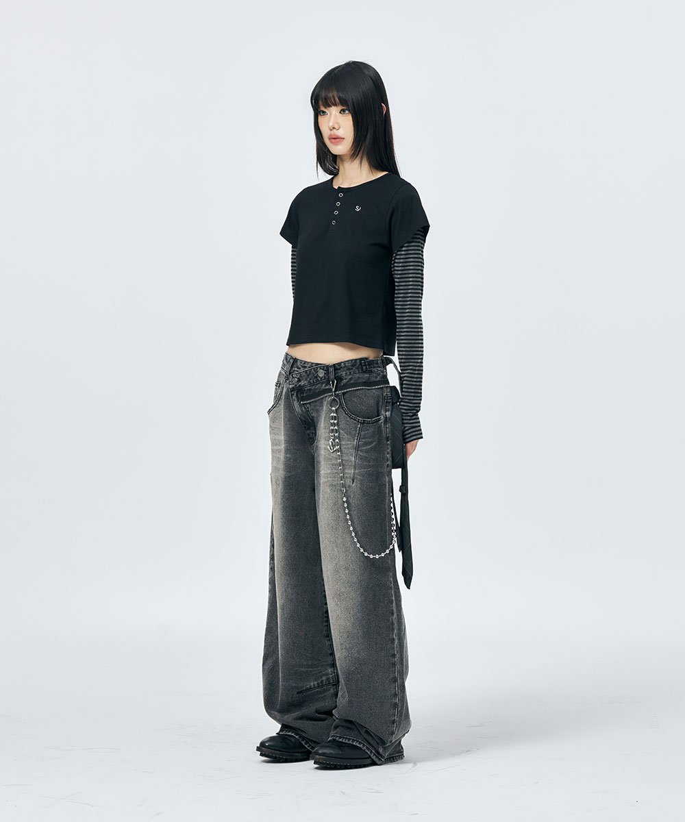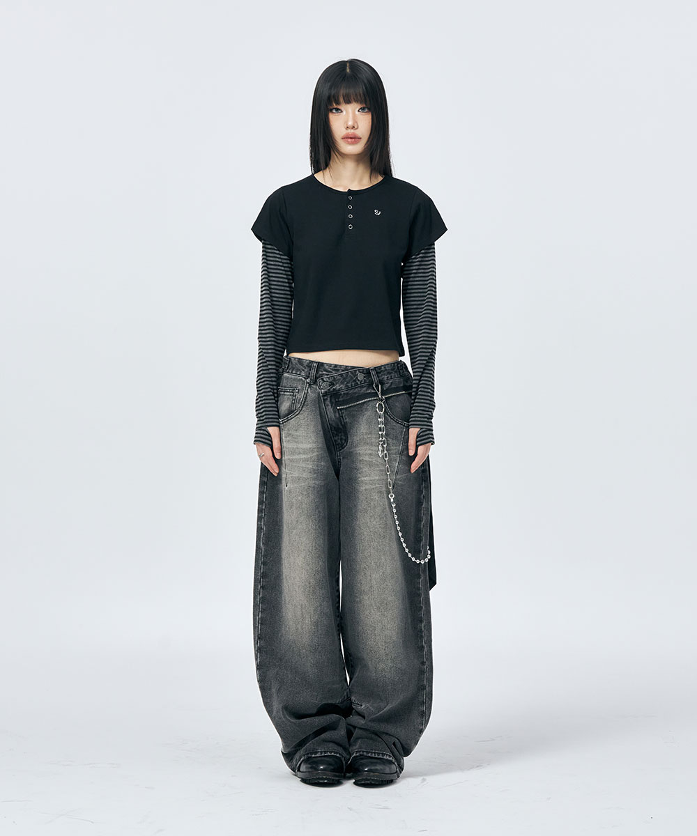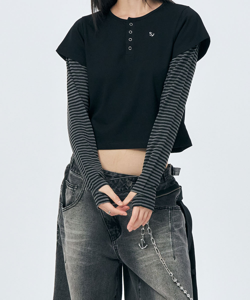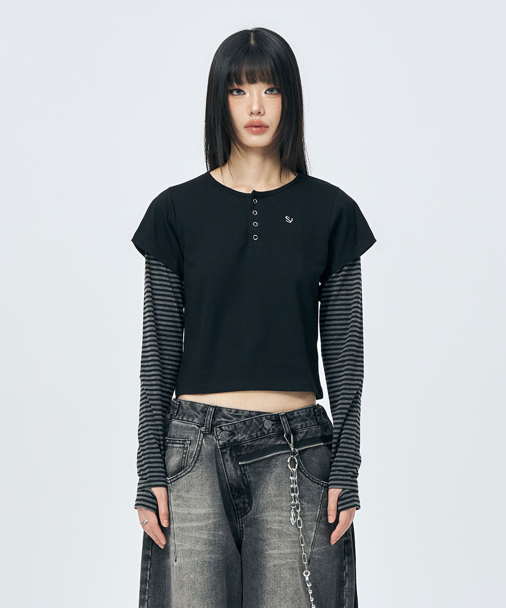 [SCHISM INDUCING] HENRY NECK LS TEE BLACK