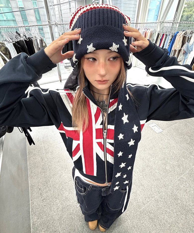 [SCHISM INDUCING] UNION JACK TRACK TOP NAVY