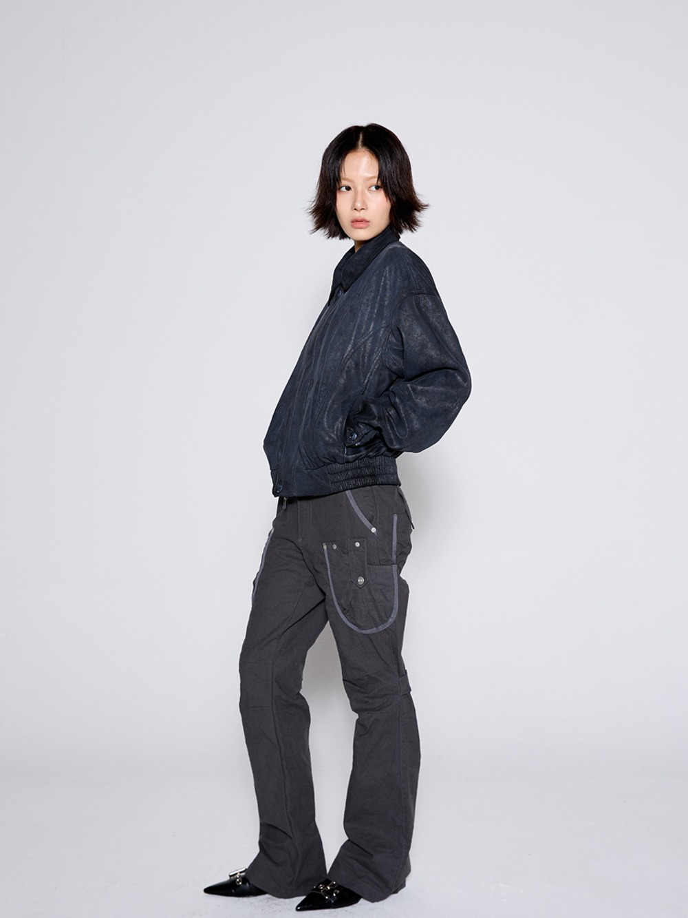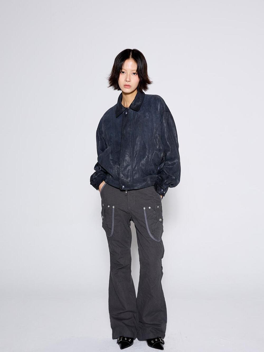 call-out-new-year-fw-25-washed-cargo-bootcut-pants-charcoal-charcoal-s