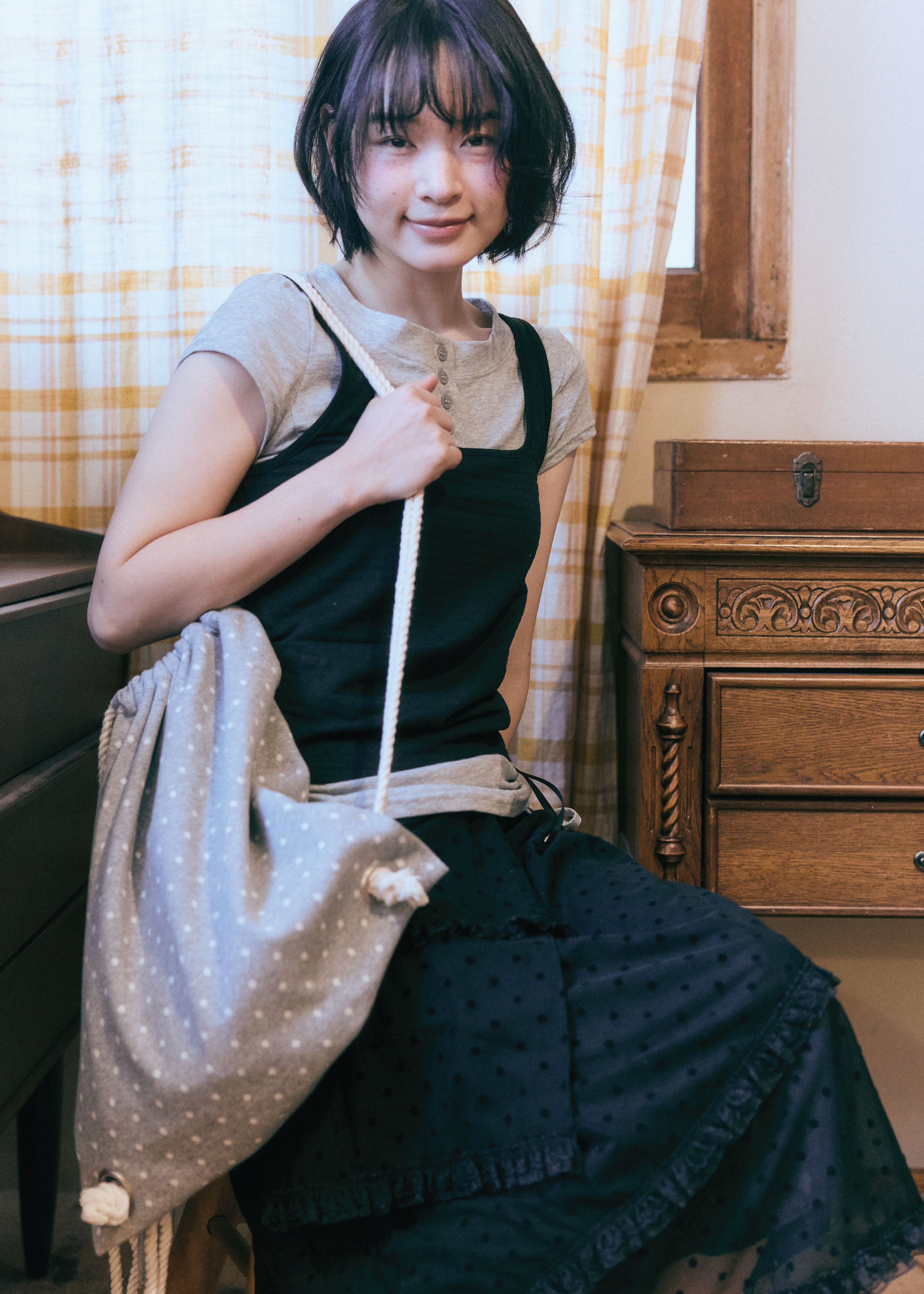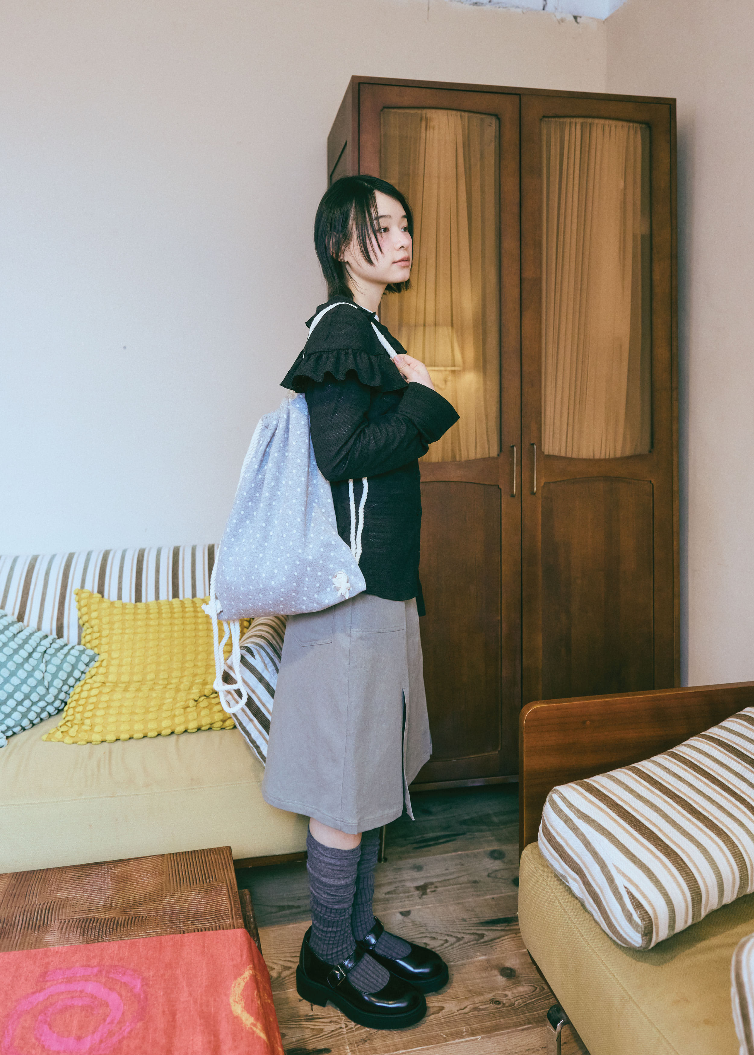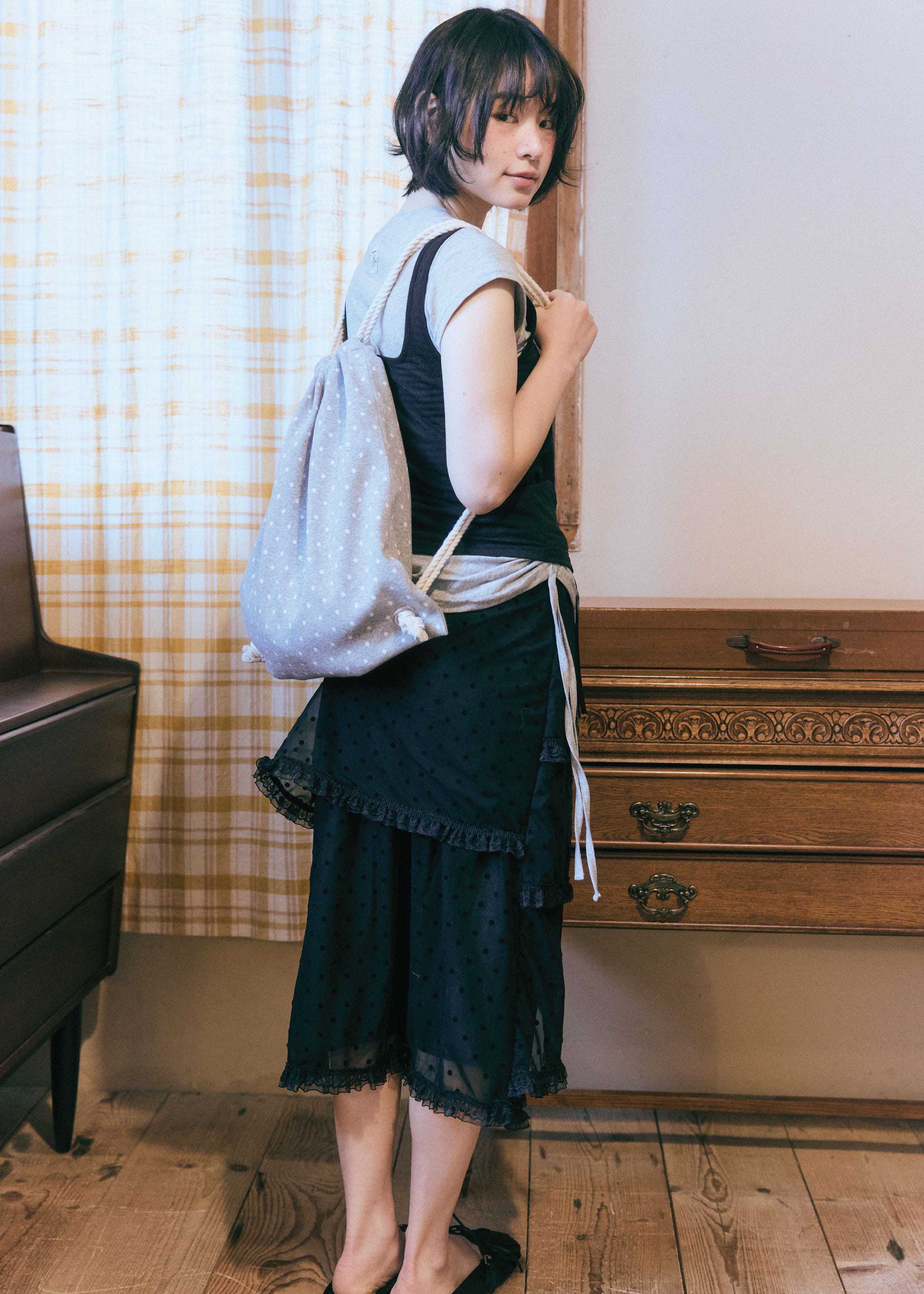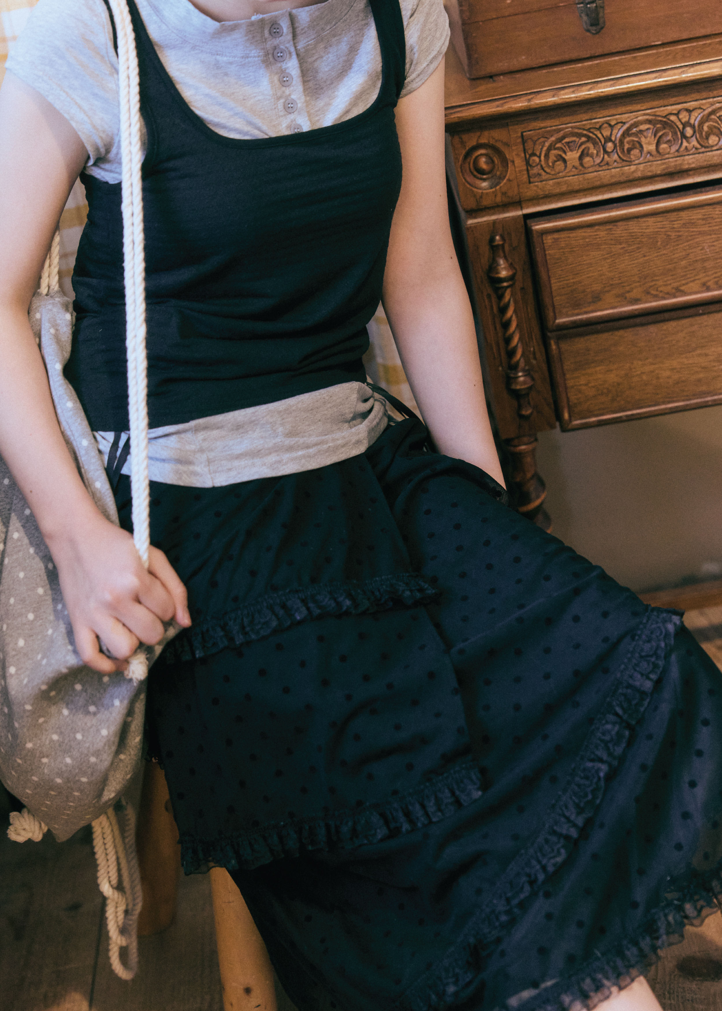 [GUWOLSIBIL] Dot string bag Melange Grey