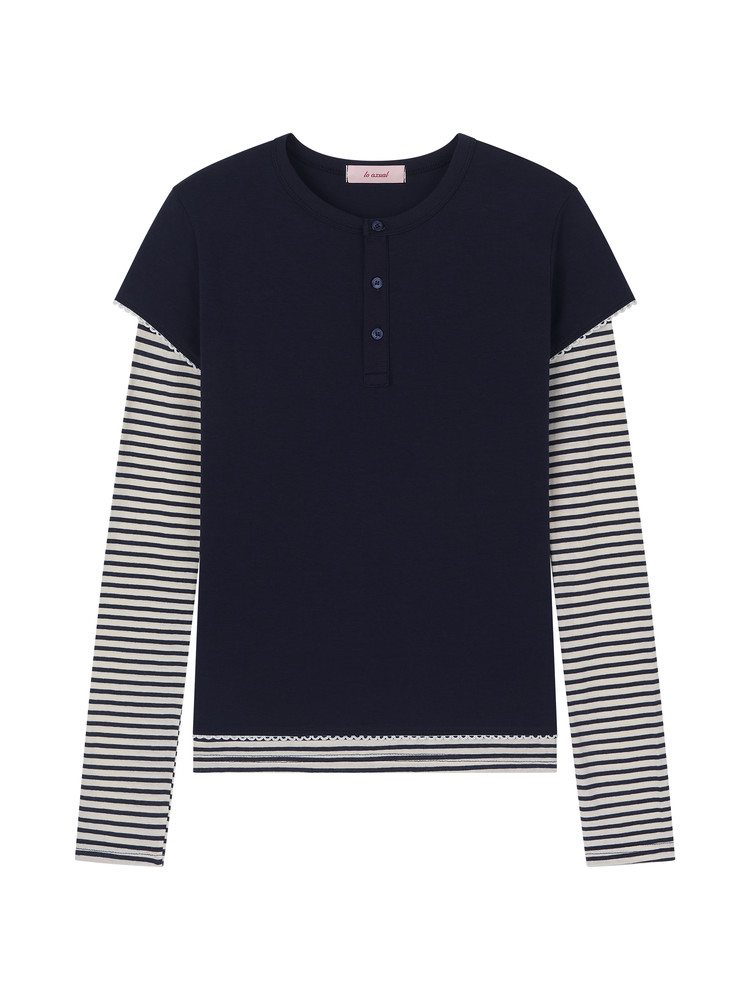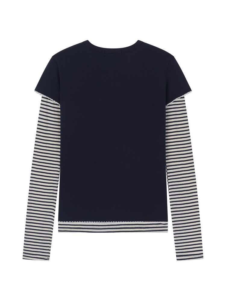 [LO AXUAL] LACE TRIMMING LAYERD LONG SLEEVE_NAVY
