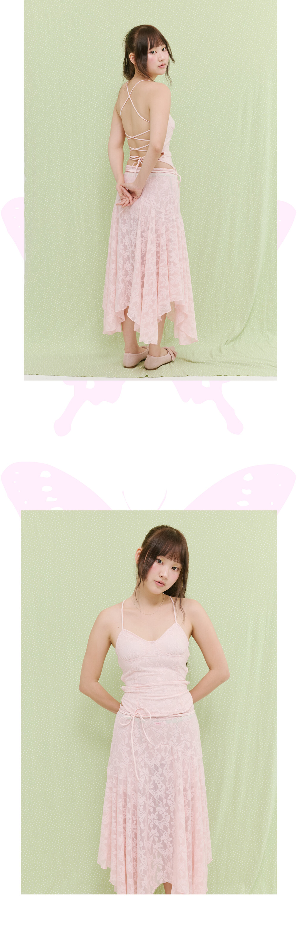 [MINJIENA] lace backless top pink butterfly