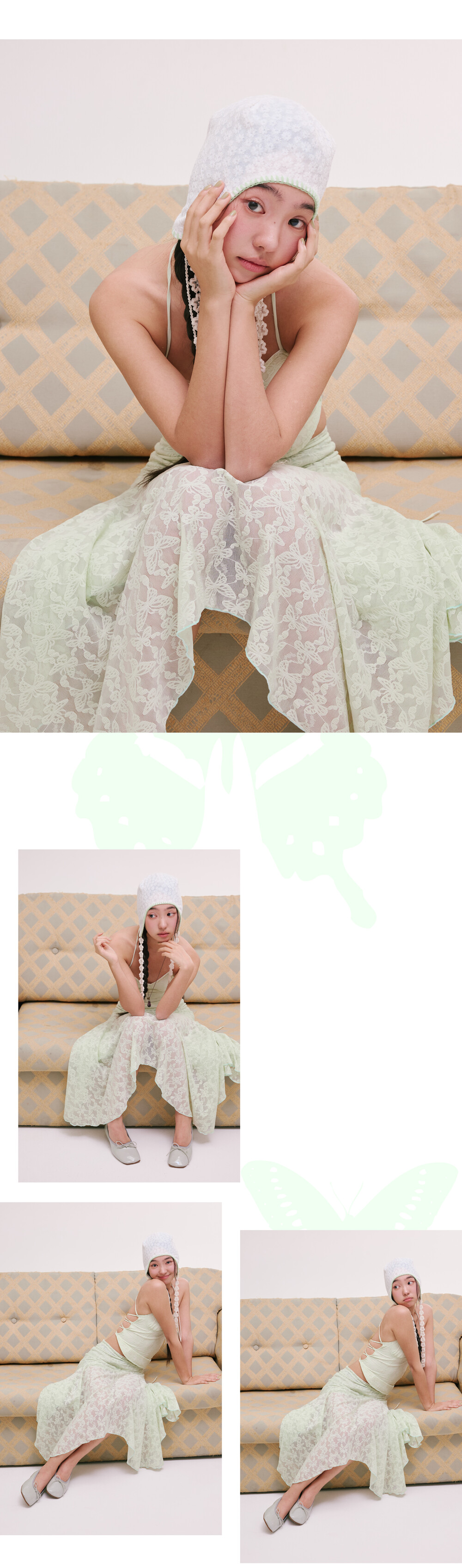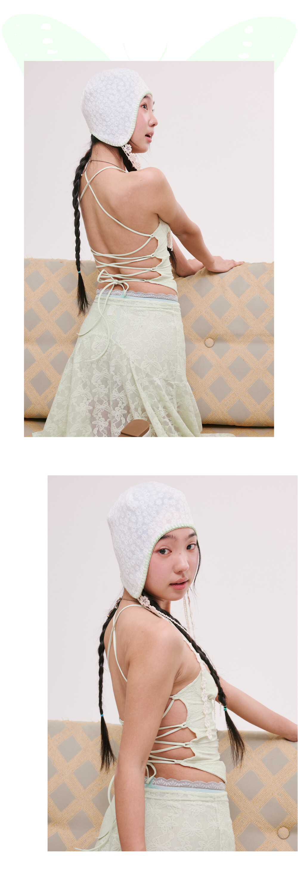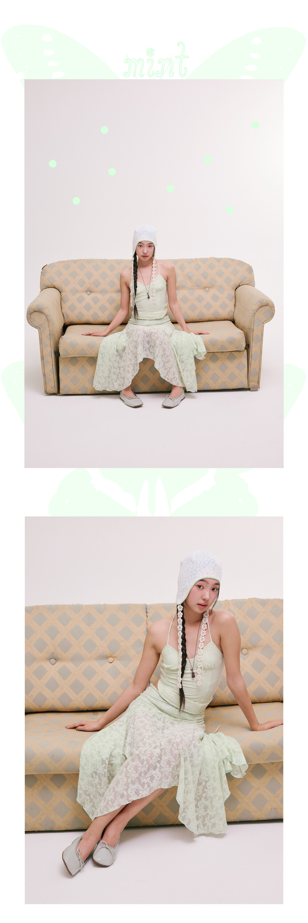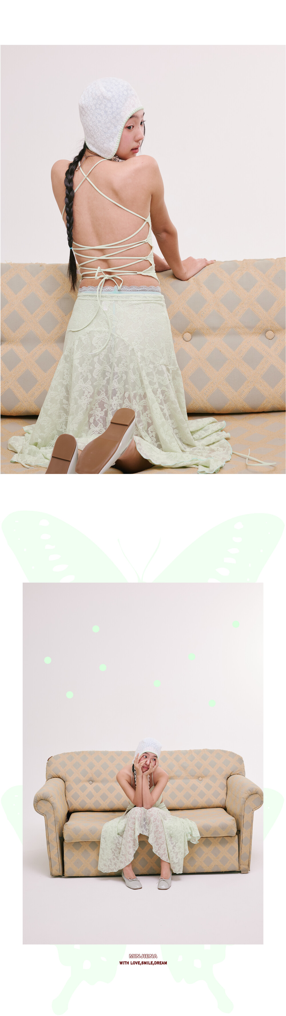 [MINJIENA] lace long skirt mint butterfly