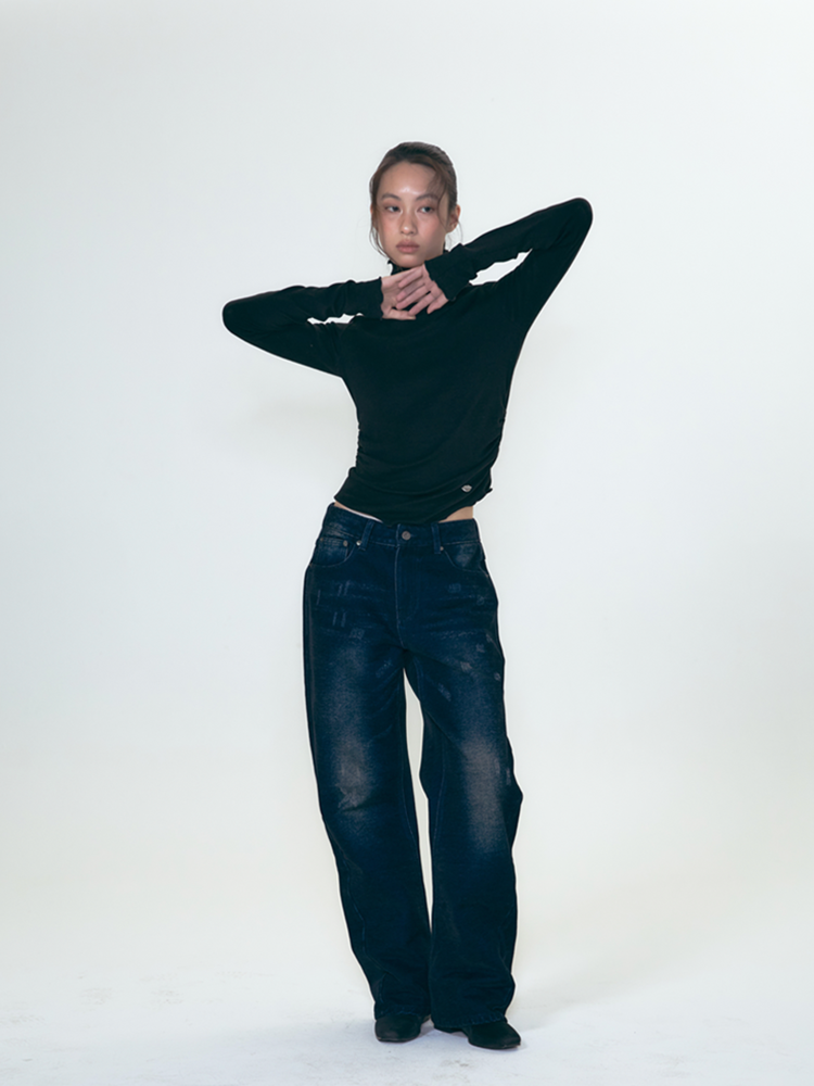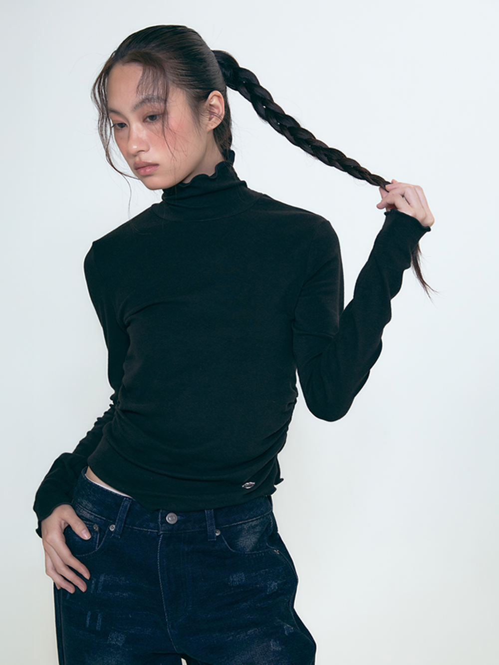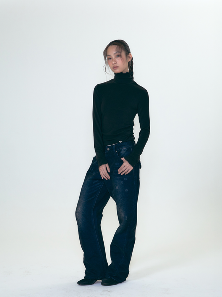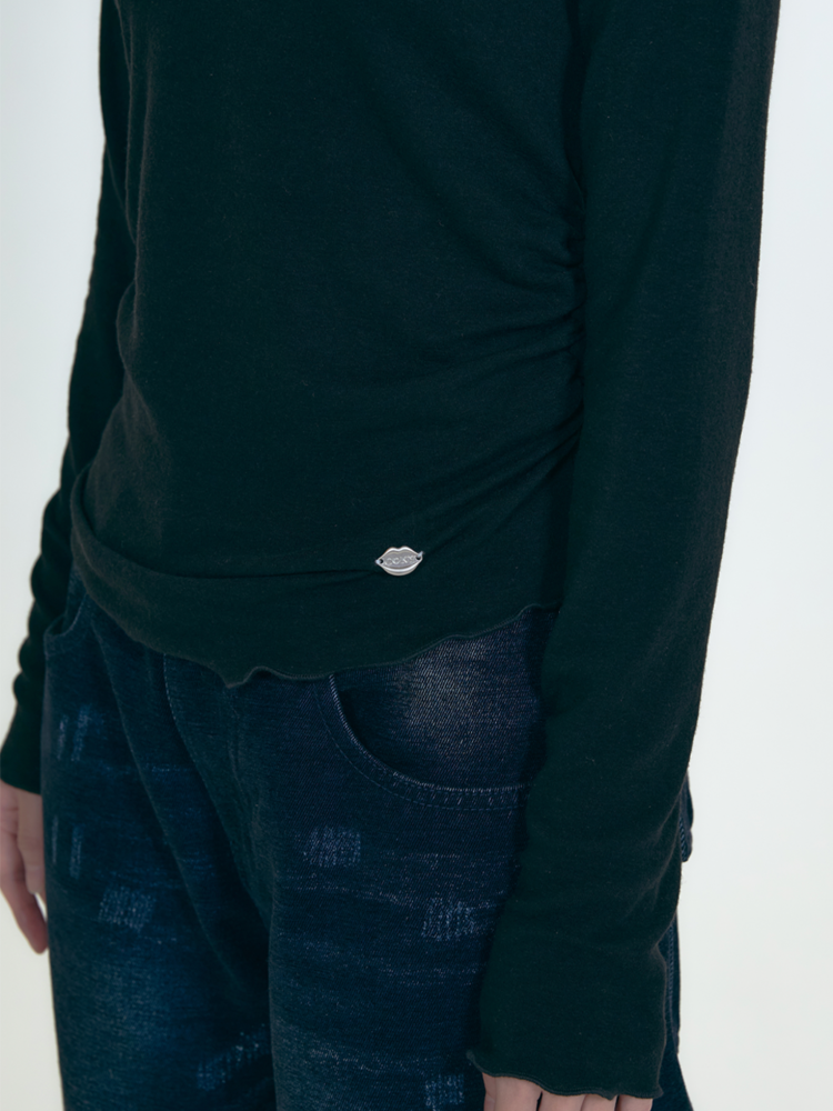 call-out-new-year-fw-25-lip-point-label-shirring-turtleneck-knit-black-black-s