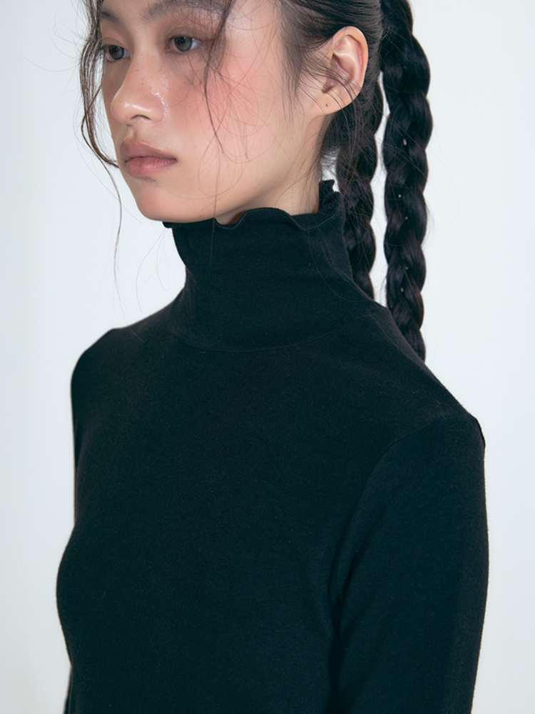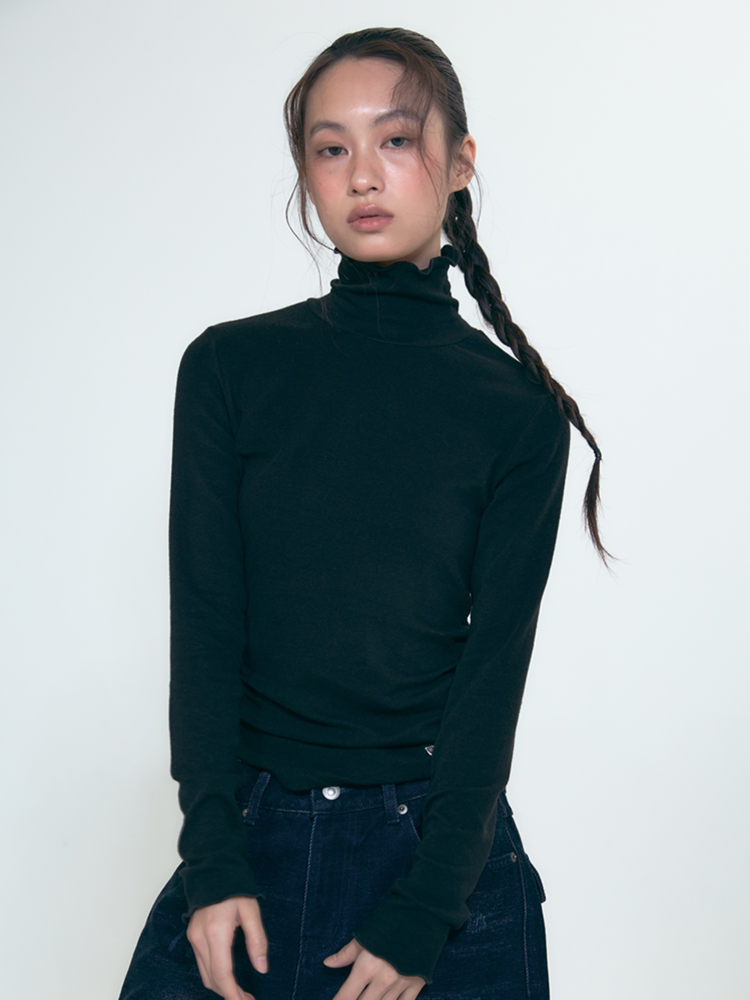 [CALL OUT NEW YEAR] LIP POINT LABEL SHIRRING TURTLENECK KNIT / BLACK