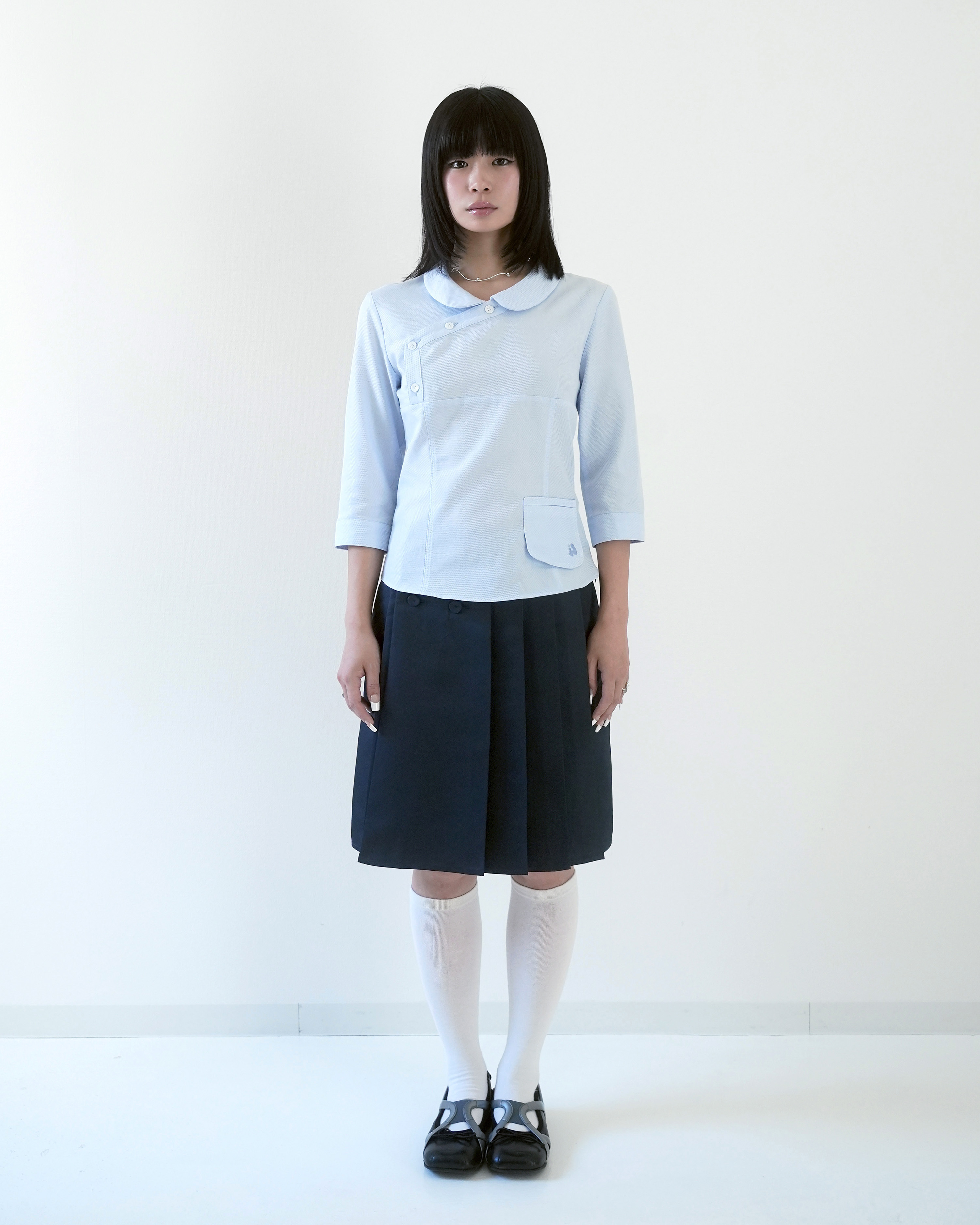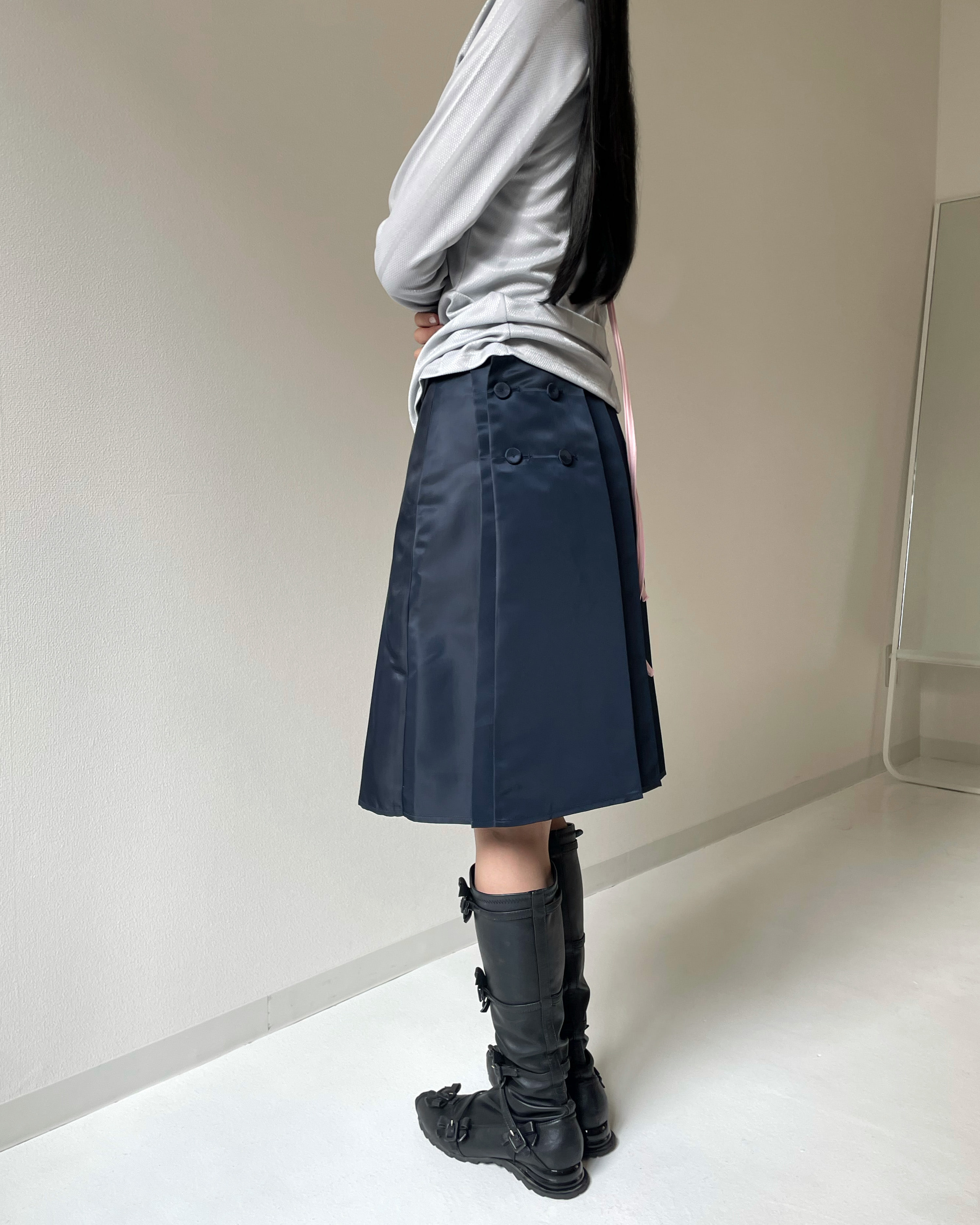 [INODORE] TWO-WAY PLEATED WRAP MIDI SKIRT _ NAVY