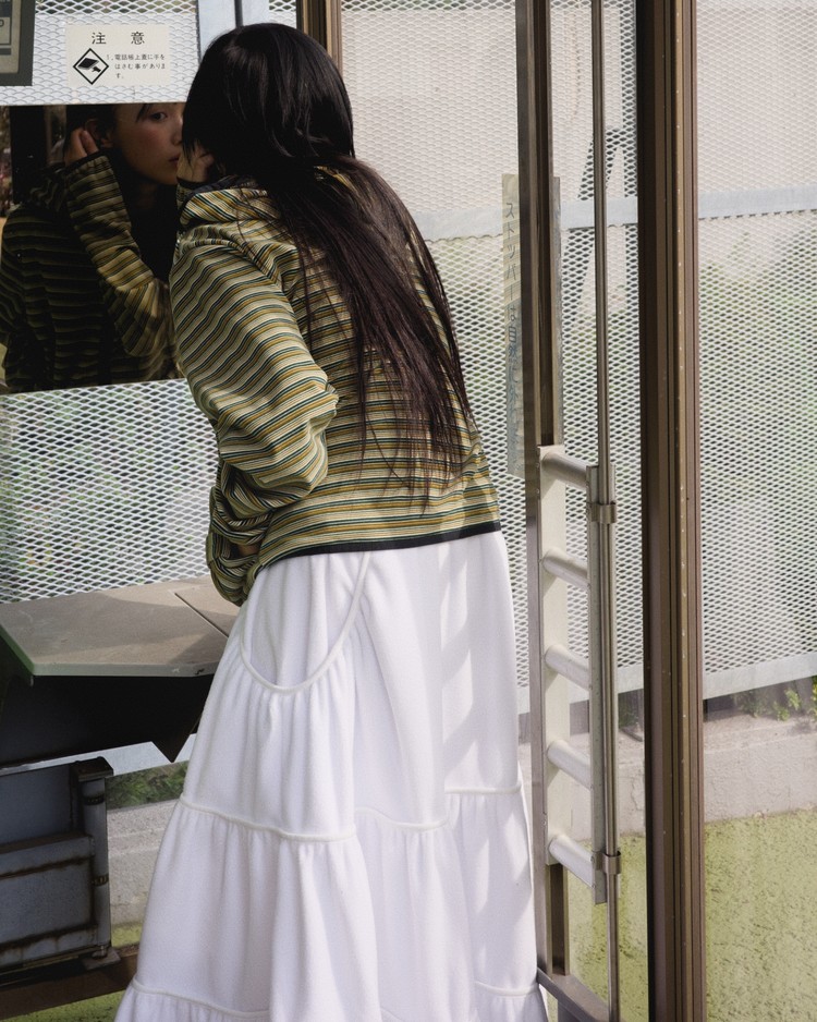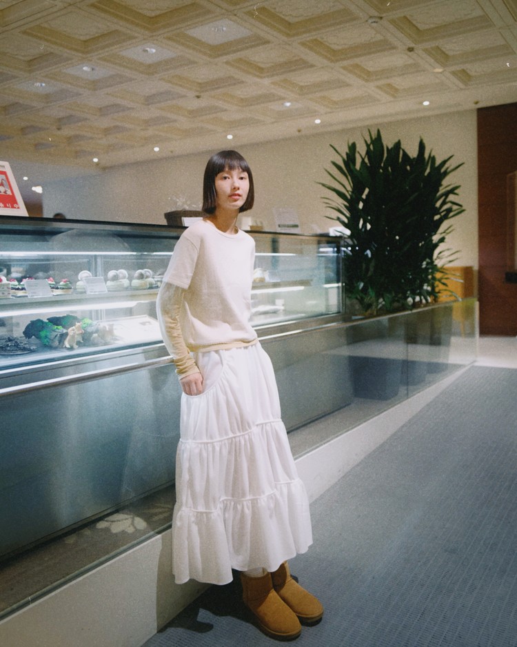 [LO AXUAL] FLEECE LOOSE POCKET TIERD SKIRT_WHITE