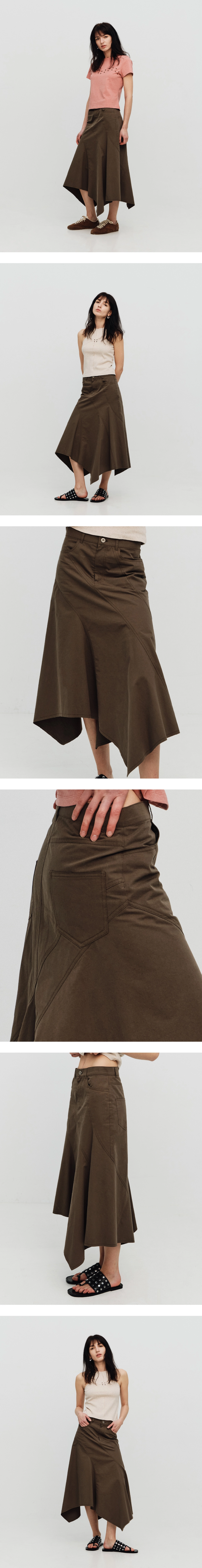 [SEALOT] ASYMMETRIC RAW CUT COTTON LONG SKIRT (KHAKI)