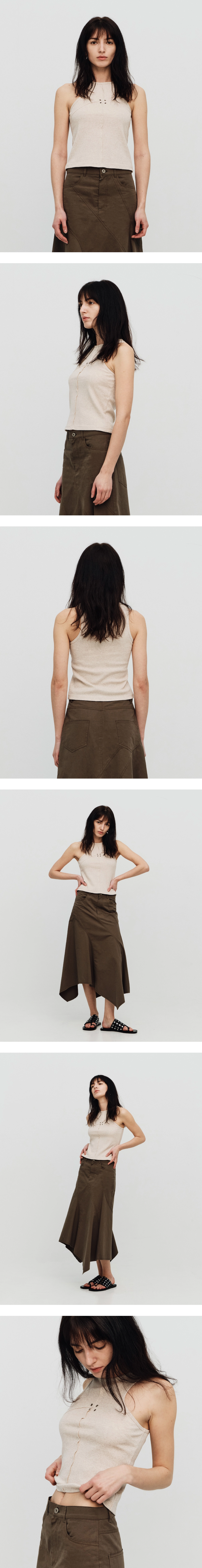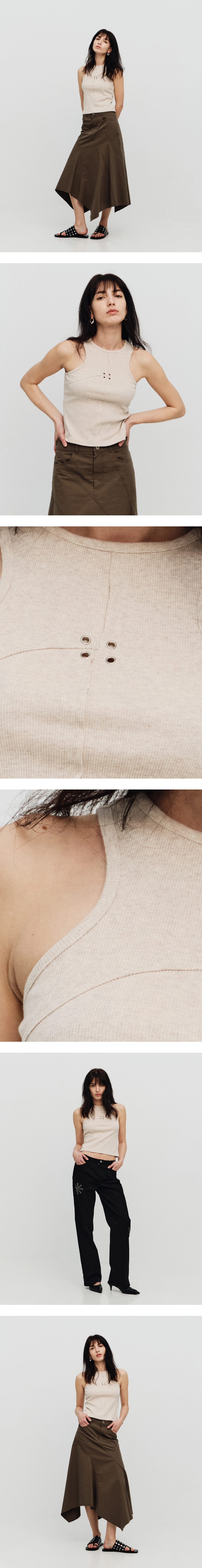 [SEALOT] SIGNATURE CUT EYELET BASIC SLEEVELESS TOP (MELANGE BEIGE)
